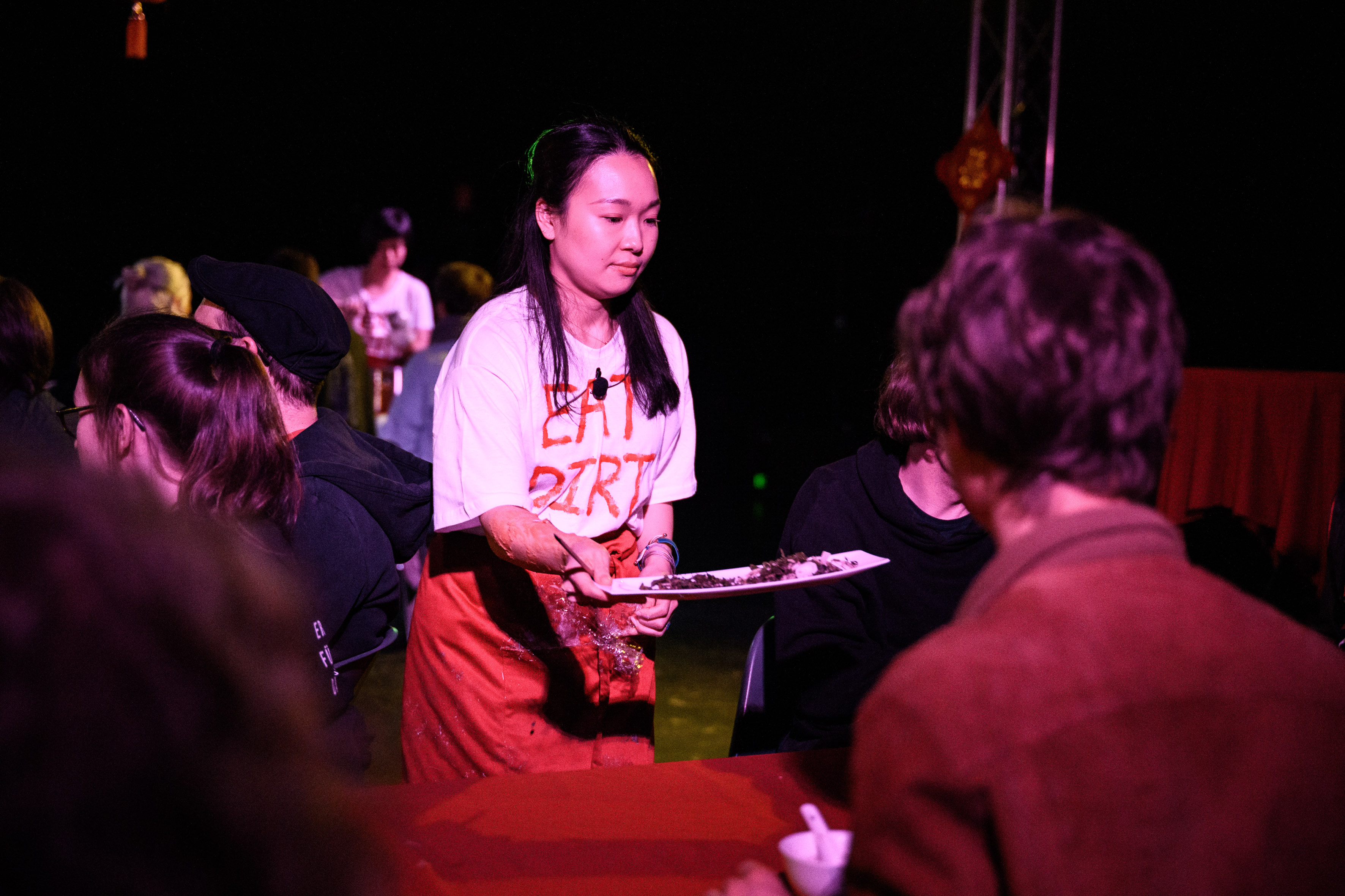 The evolution of Asian food through mobility has a long-standing history. Not only has it evolved in the occidental world to adapt to “western standards” of taste, aesthetics and aroma, dishes have also been redefined according to the availability of ingredients and local produce. Improvisation becomes key to habituate oneself to a new context where food standards differ. Mai Ling wants to deconstruct recurring representations of the Asian female migrant body by questioning notions of exoticism, the kitchen and the sensorial, and aesthetic experiences of food. The performances of Mai Ling Kocht unfold the narratives behind migration and food, not only as multicultural additions to European palettes, but as representations of societal barriers and invisible forms of discrimination.