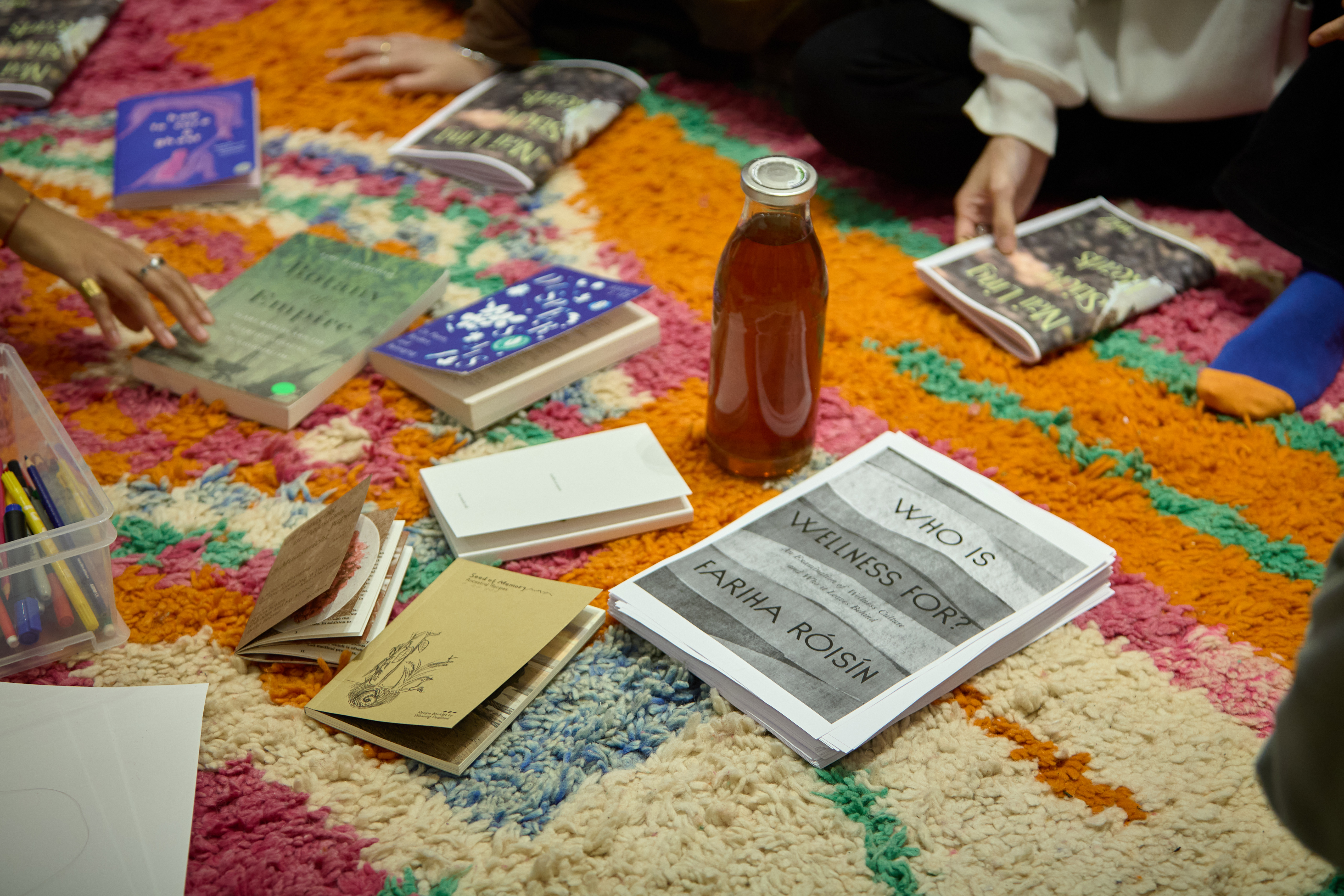 Mai Ling Sticky Reads is a relaxed reading session that explores intersectional feminist thoughts in a cozy, informal atmosphere. We’ll gather to read aloud from the Festival Reader, a collection of writing and texts that have inspired and nourished the practices of both the guests, collaborators, and the Mai Ling collective. As we move through the texts, we will reflect on the invisible energy of ‘fermentation’ as a process of transformation with multispecies relationships in natureculture. Weaving together voices and ideas, we welcome pauses for reflection, questions, curiosity, emotion, and care, allowing space for shared understanding to take root. An open discussion will follow the reading with homemade fermented drinks.