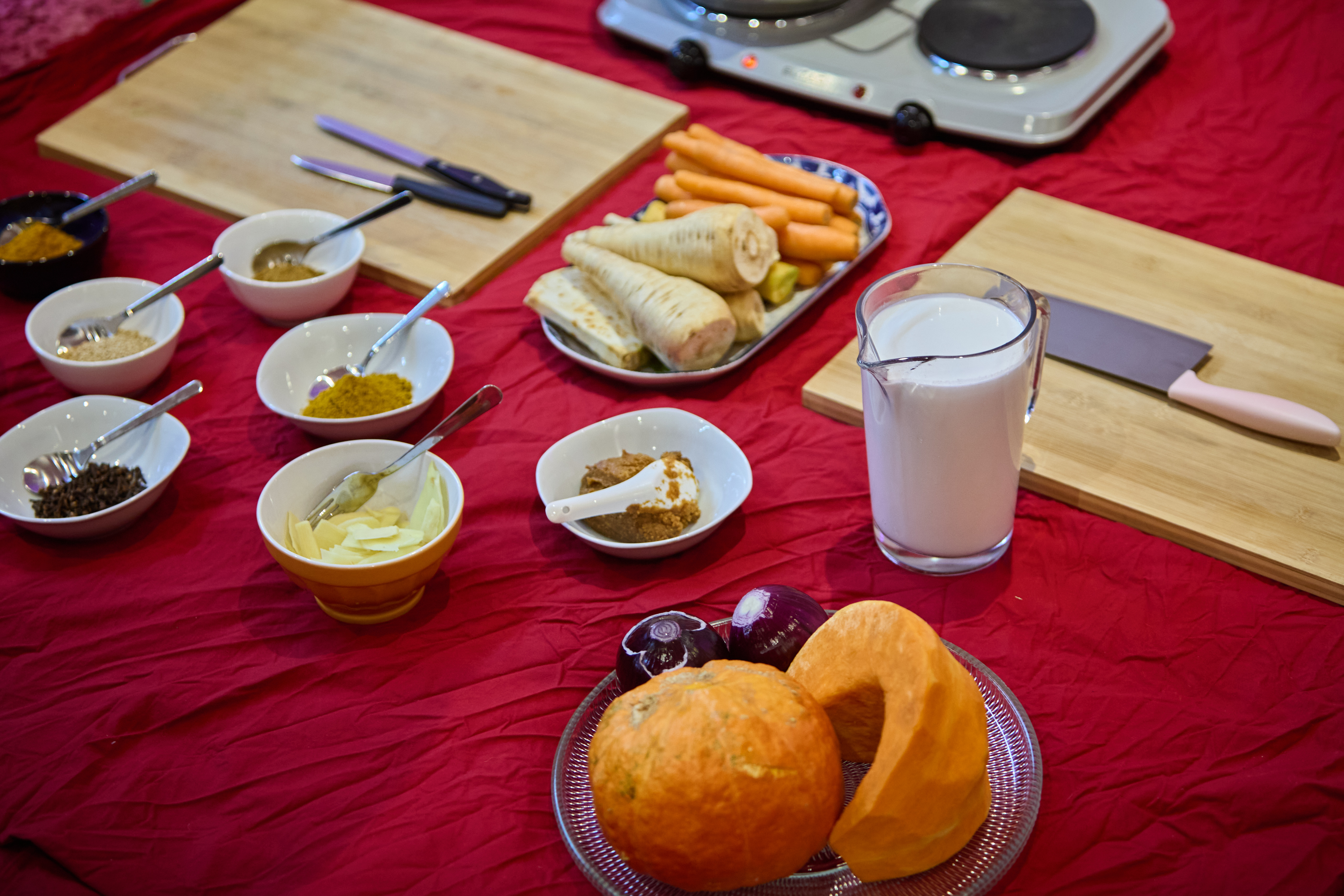 Enjoy a karaoke party with various Asian sticky fermented foods that are collectively made during the workshops on previous days, such as kimchi, tofu, kudzu dessert, rice cakes, and more!